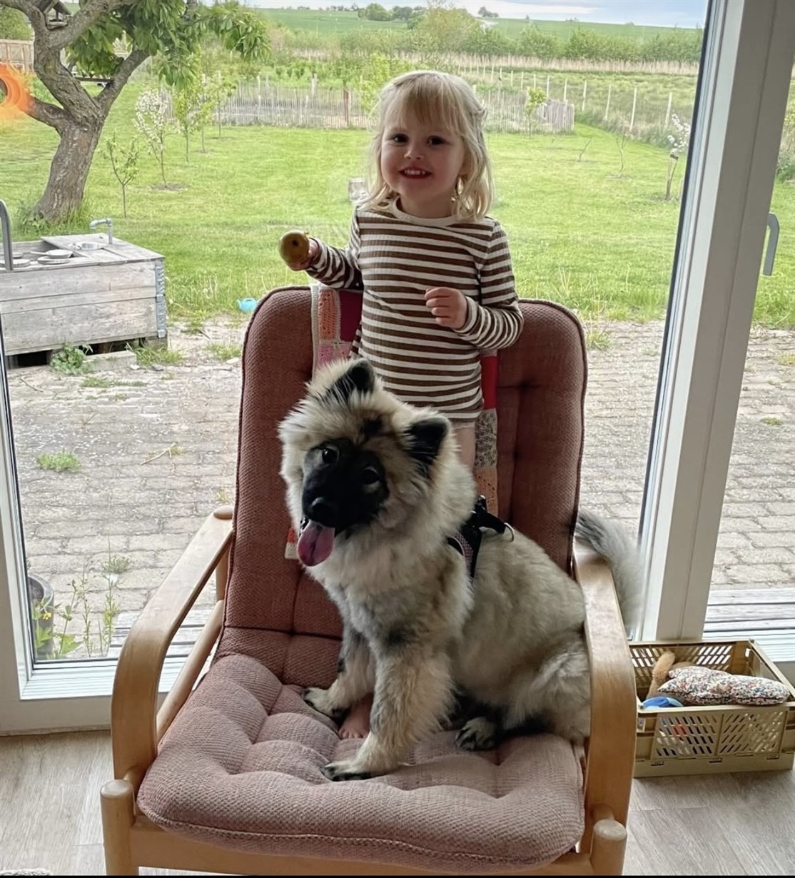 Skovhedens Atla, der som 16 ugers hvalp brækkede benet under leg. Hun har ingen mén idag, og klarede det så flot!