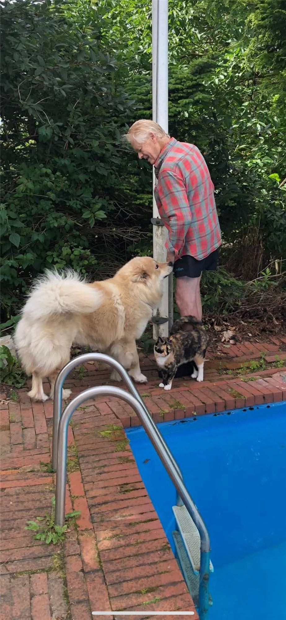 Skovhedens Bisou med sin bedste ven katten